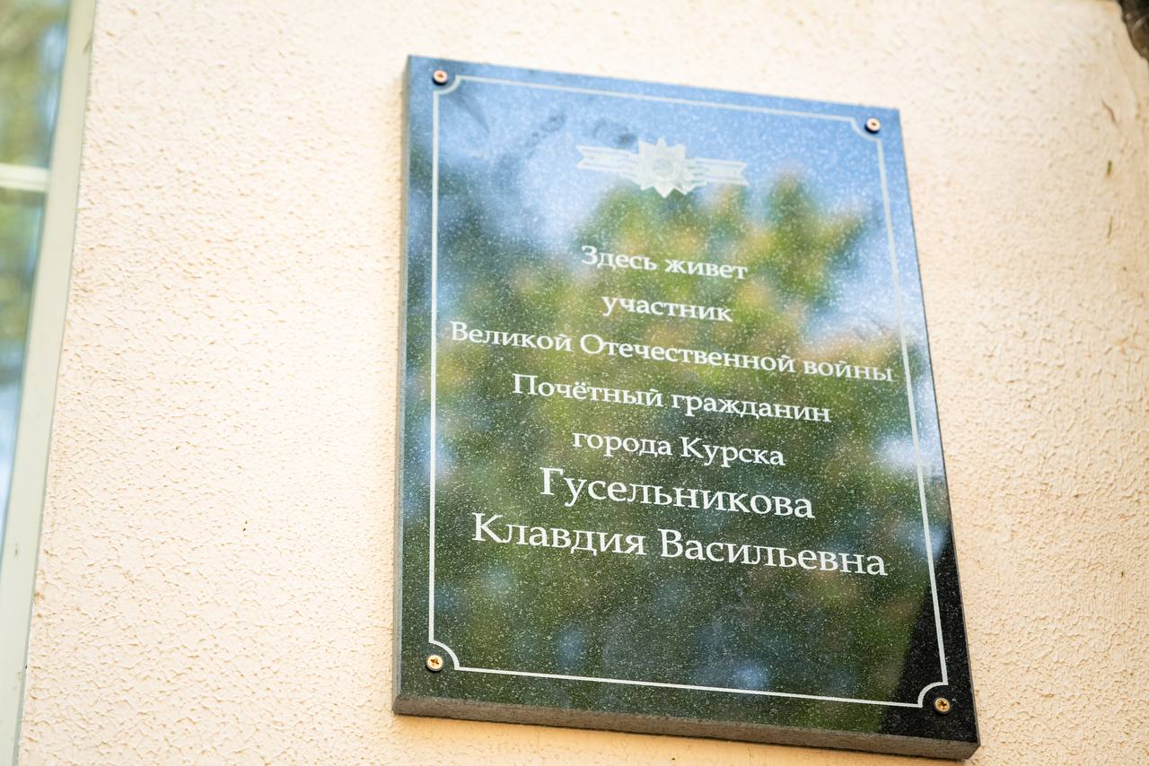 Именная табличка в честь участницы Великой Отечественной войны, почетного гражданина города Курска Клавдии Гусельниковой установили на ее доме на улице 1-Пушкарной, 43.